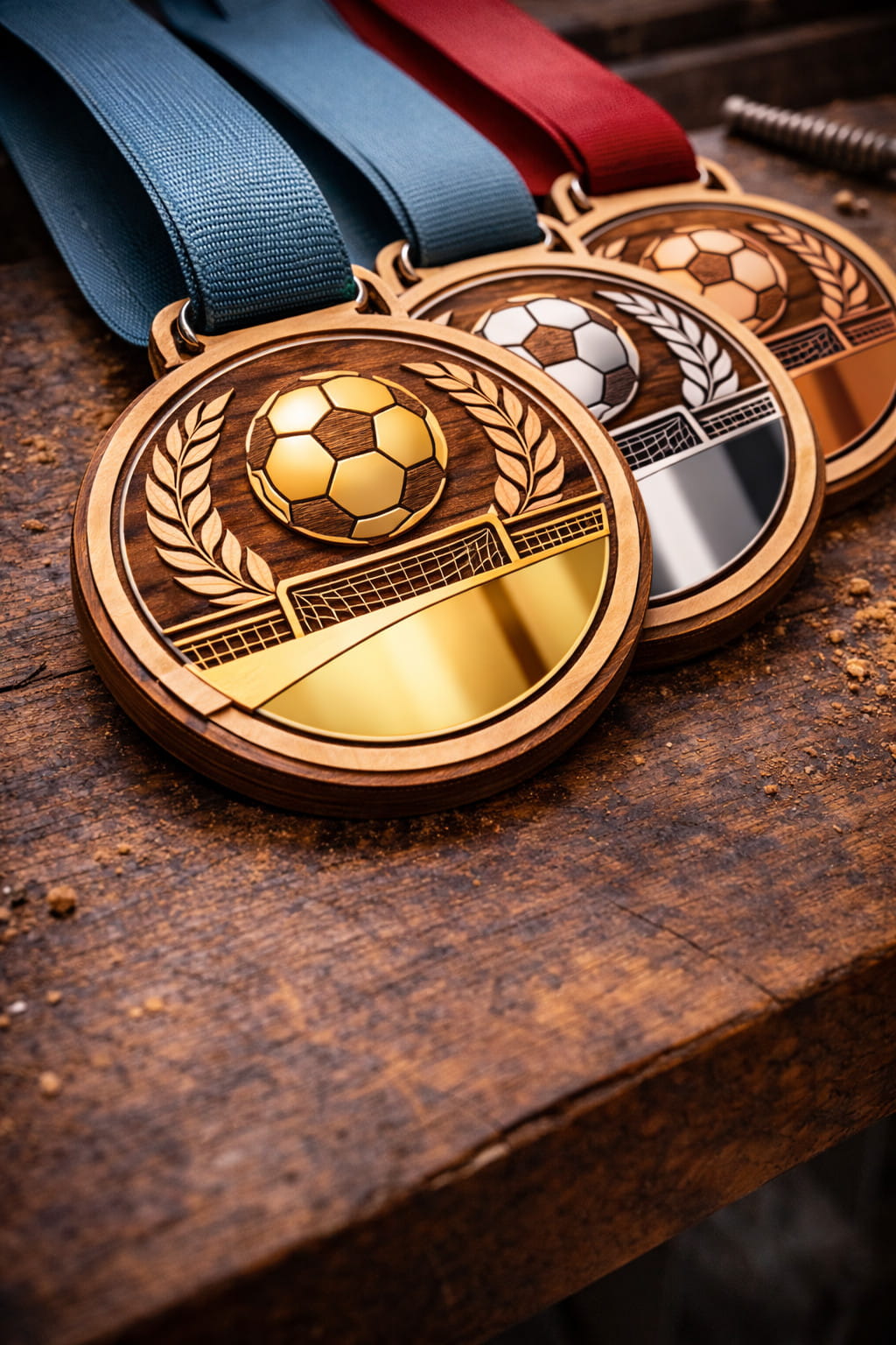 Medallas personalizadas en madera y metacrilato